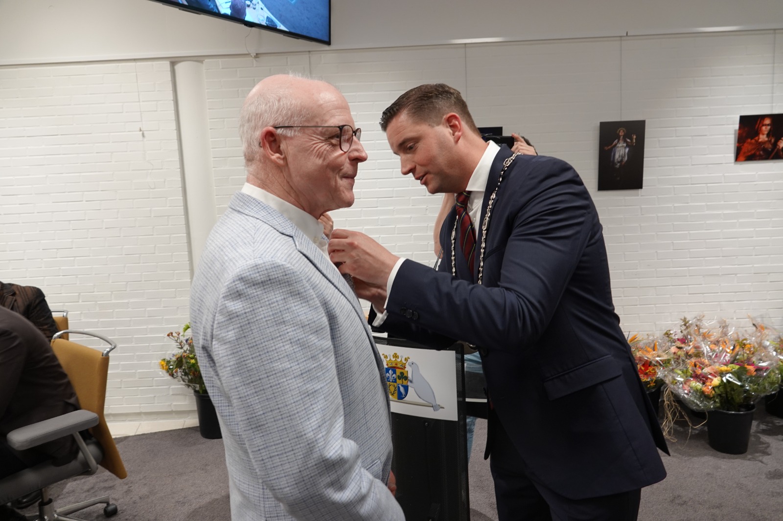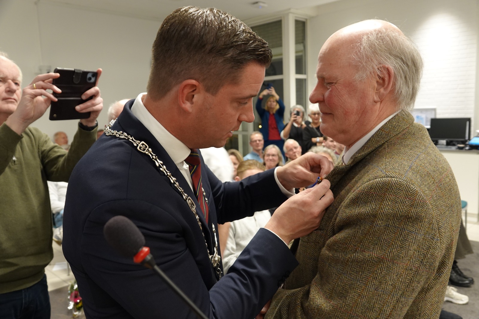 Evert Ekker kreeg een koninklijke onderscheiding en werd door de burgemeester benoemd tot “Lid in de orde van Oranje-Nassau” voor 12 jaar, 3 termijnen raadslidmaatschap.