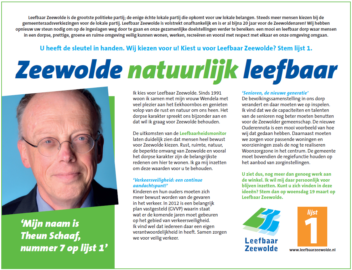 Vanaf 4 februari presenteren wij in de Zeewolde Actueel de eerste 7 kandidaten van Leefbaar Zeewolde aan de Zeewolder kiezers. Deze week nummer 7, Theun Schaaf.