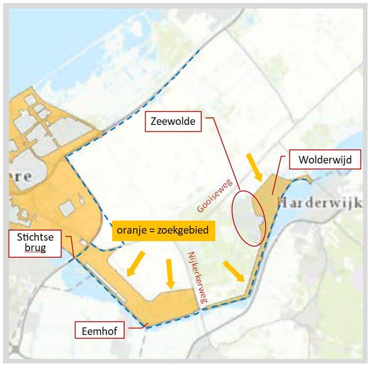 In de laatste raadsvergadering (23 april jl.) werd aan de raad verzocht om het “Flevolands bod” van de Regionale Energiestrategie (RES) vast te stellen. Deze RES 1.0 is de provinciale bijdrage aan de landelijke duurzame energie opwekking. Bij de fractie van Leefbaar Zeewolde gingen onmiddellijk alle alarmbellen af bij een KAART waar het toekomstig zoekgebied voor wind energie werd aangegeven. In onze gemeente betreft dit zoekgebied een strook van enkele kilometers breed vanaf de Stichtse brug langs de randmeren met het hele bos gebied waar de Eemhof in ligt tot aan de Nijkerkerweg. Vanaf daar verder de hele kuststrook via Zeewolde tot aan Harderhaven, inclusief een groot deel van het Wolderwijd!