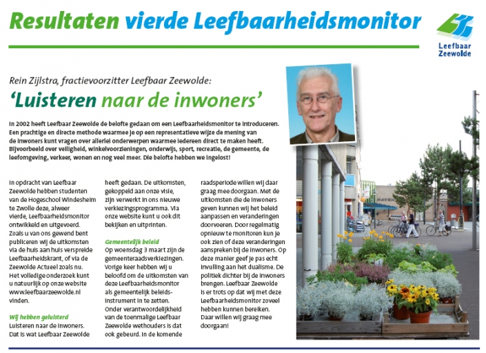 Leefbaar Zeewolde presenteert de uitkomsten van de 4e Leefbaarheidsmonitor.