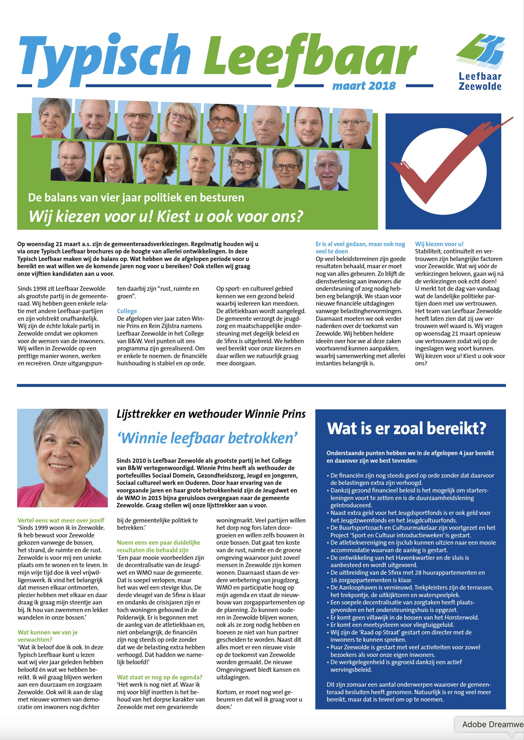 Wethouder Winnie Prins blijft in het college van Burgemeester en wethouders en met 5 raadsleden in de gemeenteraad behoudt Leefbaar Zeewolde haar belangrijke stem.